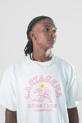 Camiseta Unisex Oversize en 100% Algodón Estampado en Serigrafía. Delantero / ” Cartagena”/ “Drink Club”/”Cartagena, Co” Trasero / ” Cartagena”/ “Drink Club”/”Cartagena, Co”