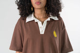 Camiseta Unisex Oversize en 100% Algodón. Cuello Tipo Polo en Rib, con botones de Nacar. Bordado de platanitos.
